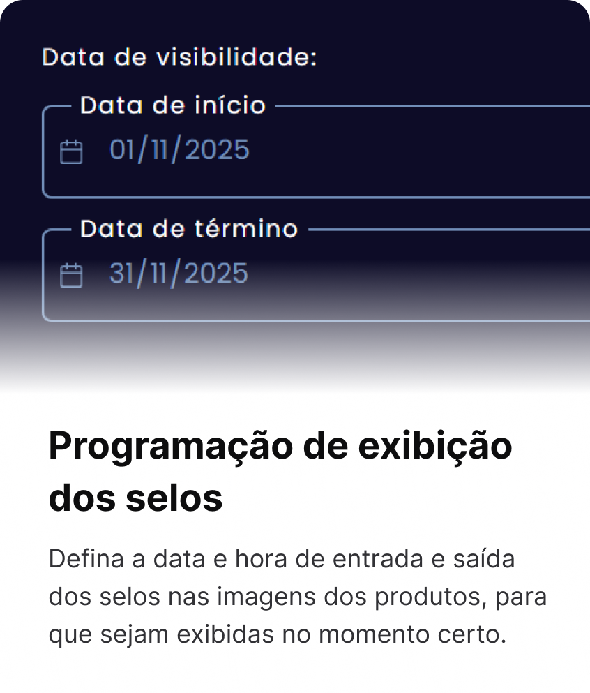 Configure horário de entrada e saída dos selos nos seus produtos e coordene promoções.